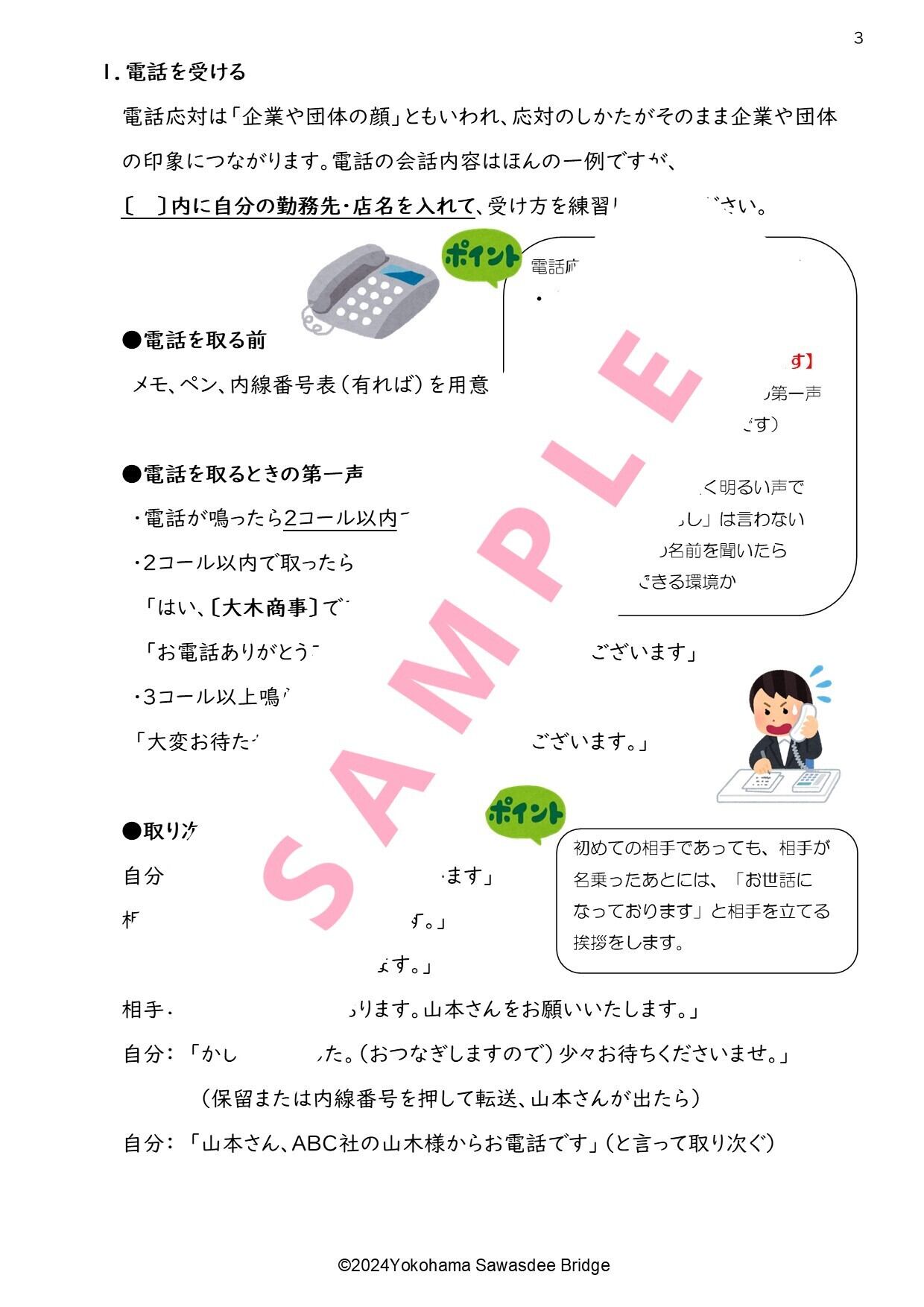 本テキストの内容の一部は、商工会議所主催のセミナー、神奈川県内公立中学校でのマナー講習で指導してきた内容です。